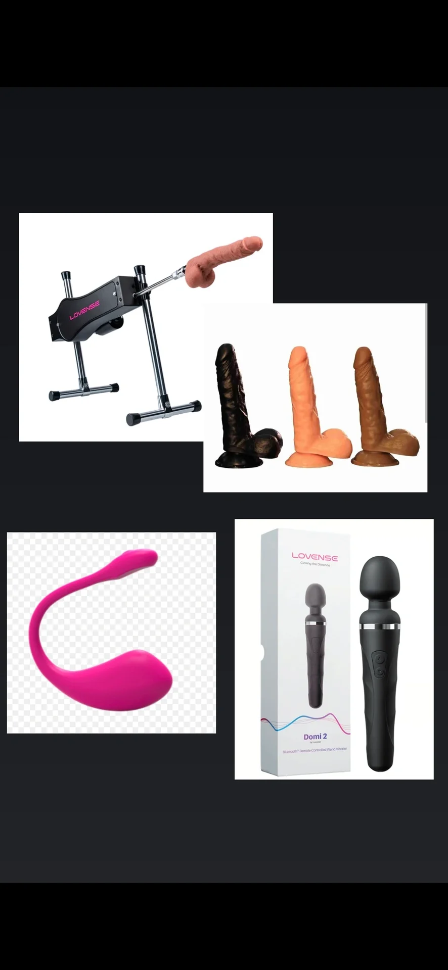 I have several toys for fun: a fuck machine, a Lovense, a Domi, a dildo, a gag, clamps, a plug—in the end , we can do so many things. Just ask. YOUR PLEASURE IS MY PLEASURE! ;)